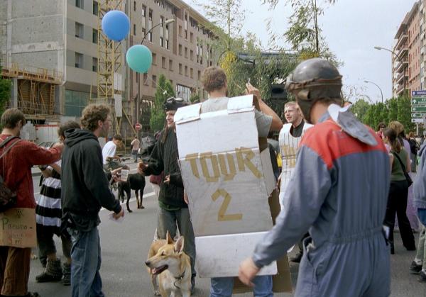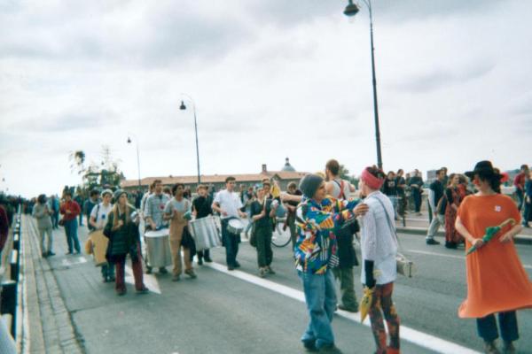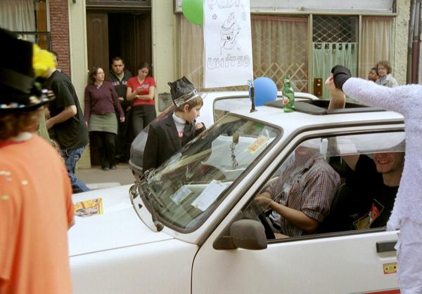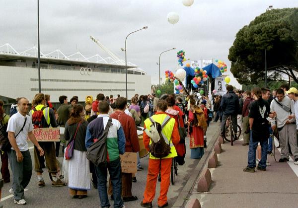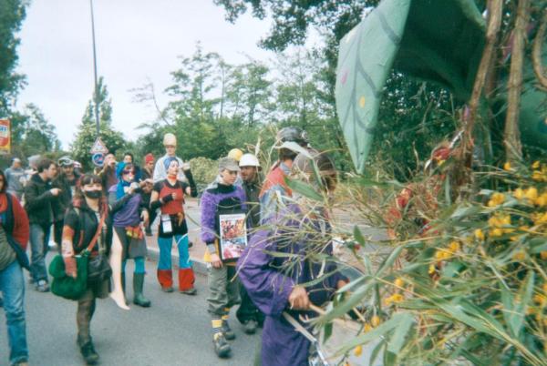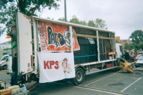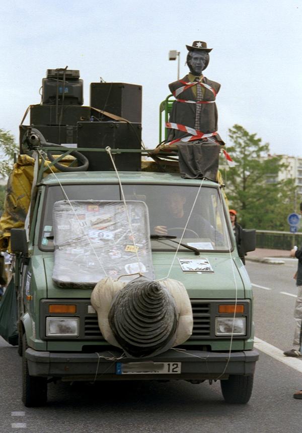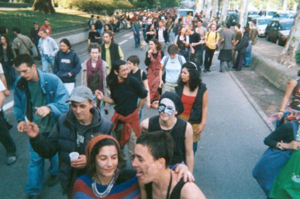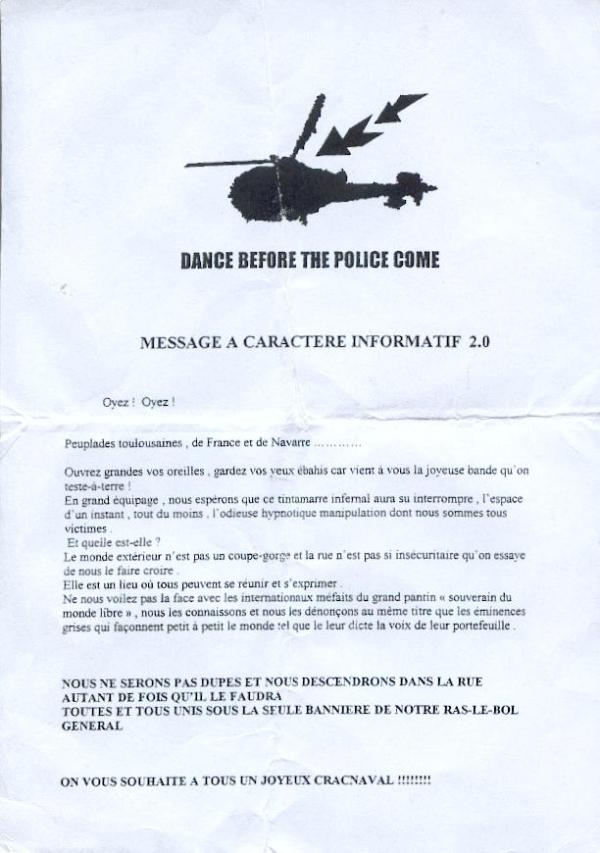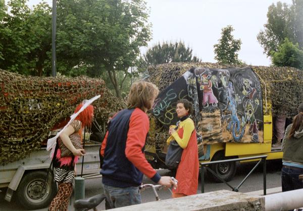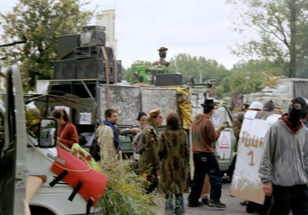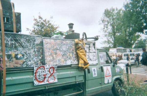 Excellente journée à Toulouse ! 12 chars la plupart de sound systems, des objets roulants non identifiés, des visages très sympathiques et bien déguisés, un accueil favorable des passants, un passage au centre ville des plus réussis avec une longue halte, des autorités pas emmerdantes pour un sou, et une manif bien préparée avec un temps excellent juste pour défiler, des lives variés (hardcore, jungle, house, tekno, punk, rock, rap)... que demander d'autres ? Peut-être un parcours encore plus central ? peut-être une pub plus importante... Sûr que le karnaval des sons de Toulouse l'an prochain ca va être mortel ! Inz |